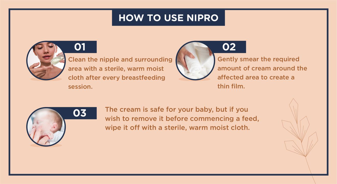 - Protective Shield: Nipro cream coats your nipple skin with a thin protective film and prevents nipple soreness, while being non-sticky and non-messy.